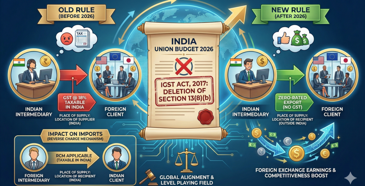 *** Keywords: Budget 2026, IGST Act, Section 13(8)(b), Intermediary Services, Place of Supply, GST Export, Reverse Charge Mechanism, Indian Taxation, Service Tax India.